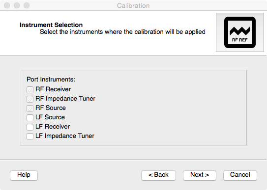 For the ports selected in the previous step, specify the instruments that will be calibrated by the ensuing calibration routine. This information will help determine hich measurements are needed to perform the calibration.